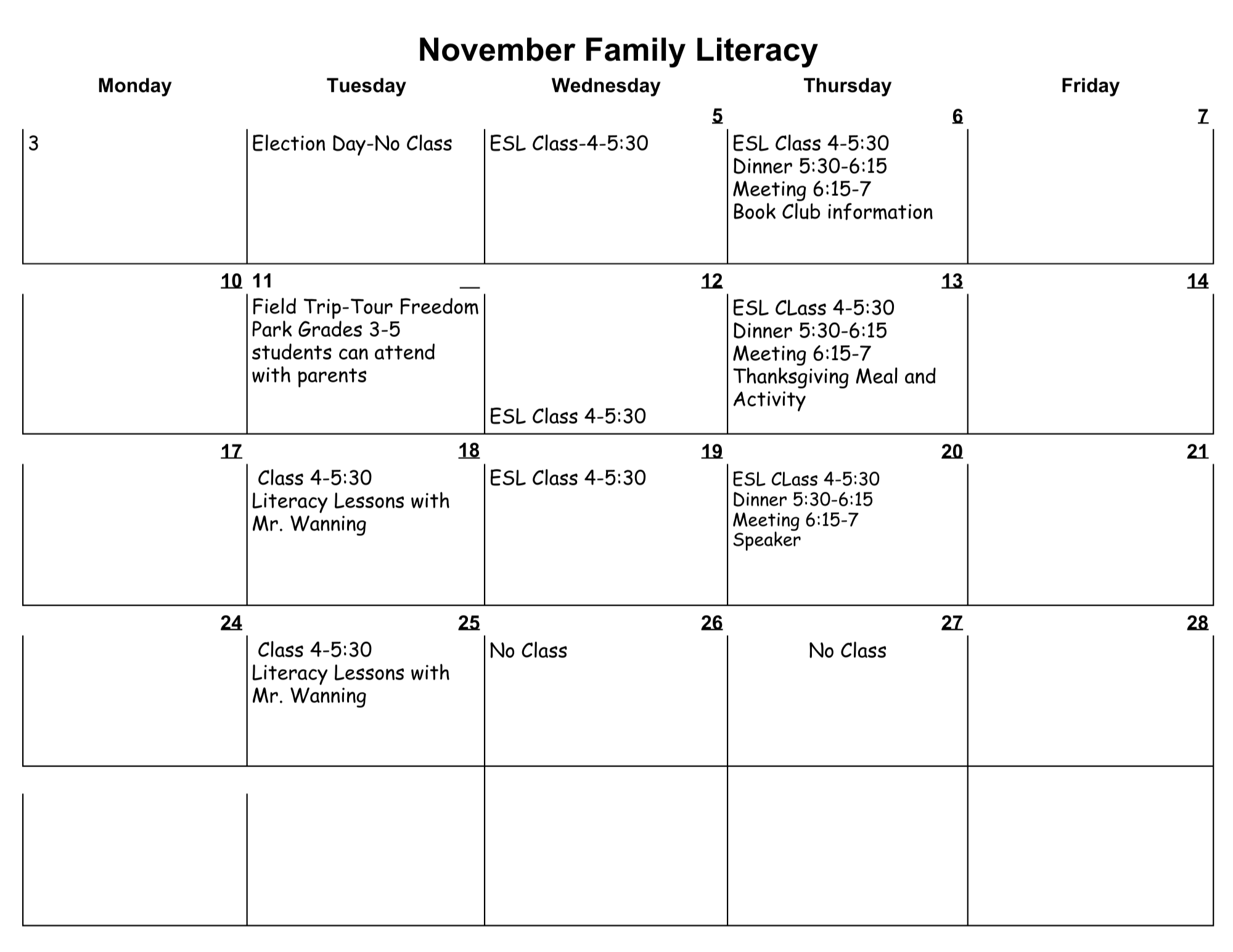 We will also have our bilingual Community Liaison Heidy Gonzalez available on Tuesdays (4-5:30PM) and Thursdays(5:30-7PM) to connect our families with school resources. Please feel free to stop by at that time if it works better with your schedule.